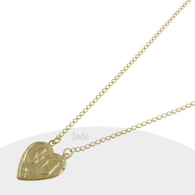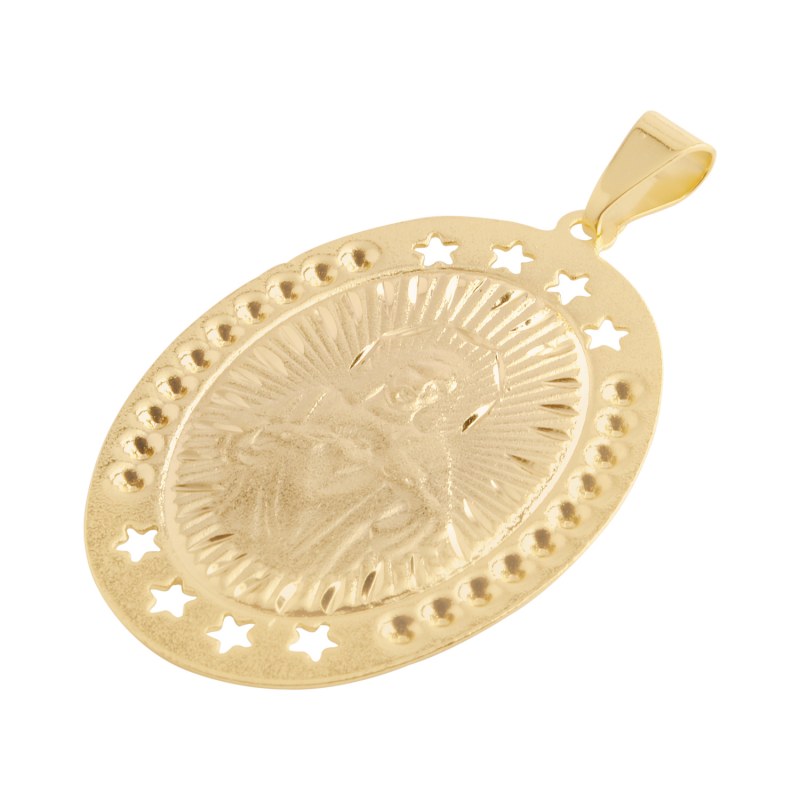 Pendiente placa de sagrado de Jesús baño de oro amarillo 18k