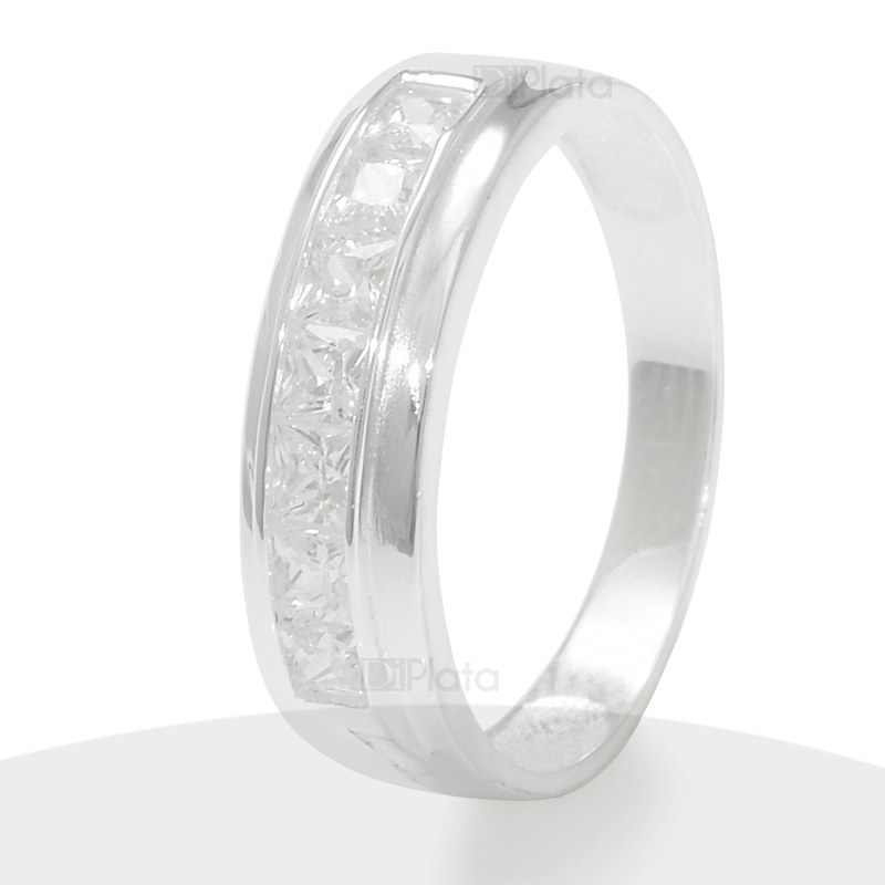 Anillo cintillo con cinco circones rectangulares Plata 925