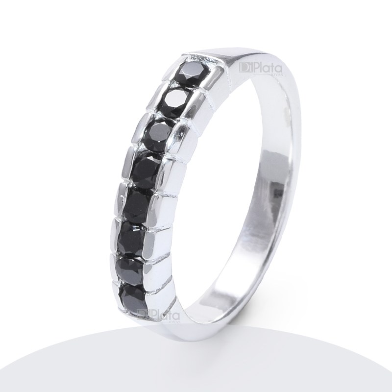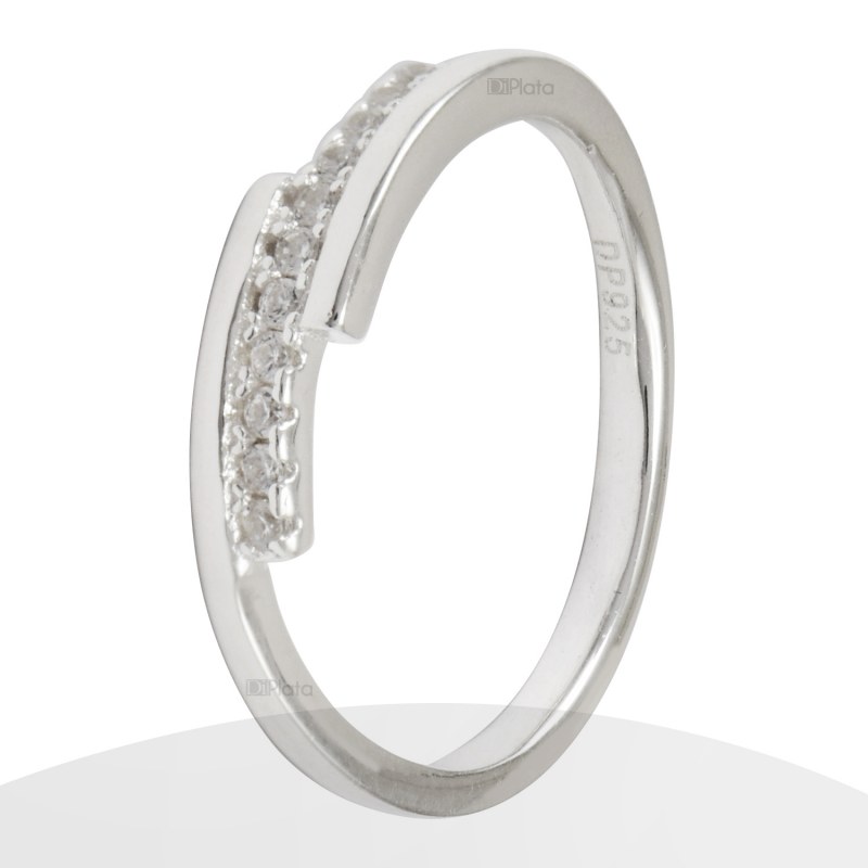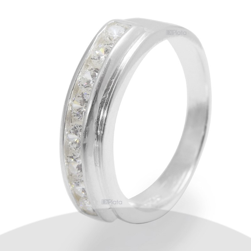 Anillo medio cintillo con micro circones color cristal Plata 925