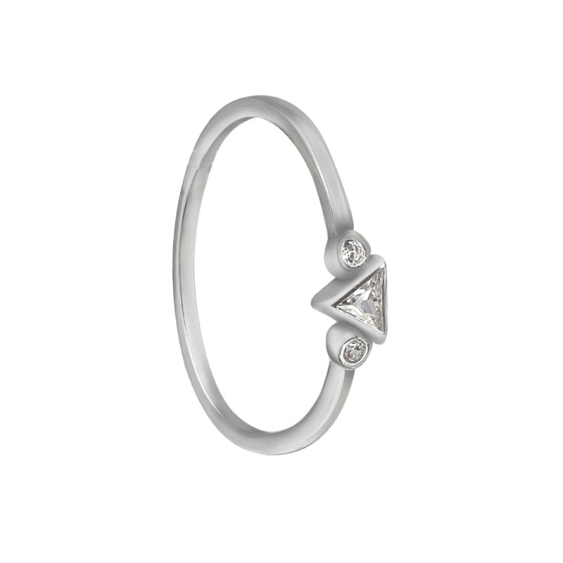 Anillo diseño circón triangulo con dos punto de luz plata 925