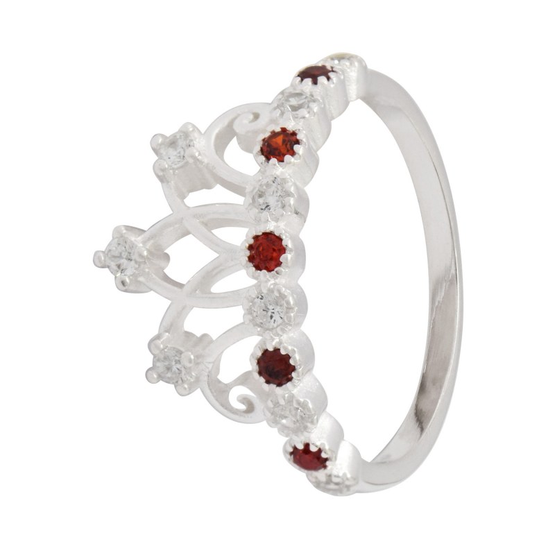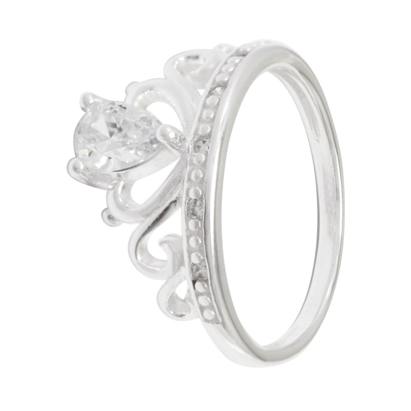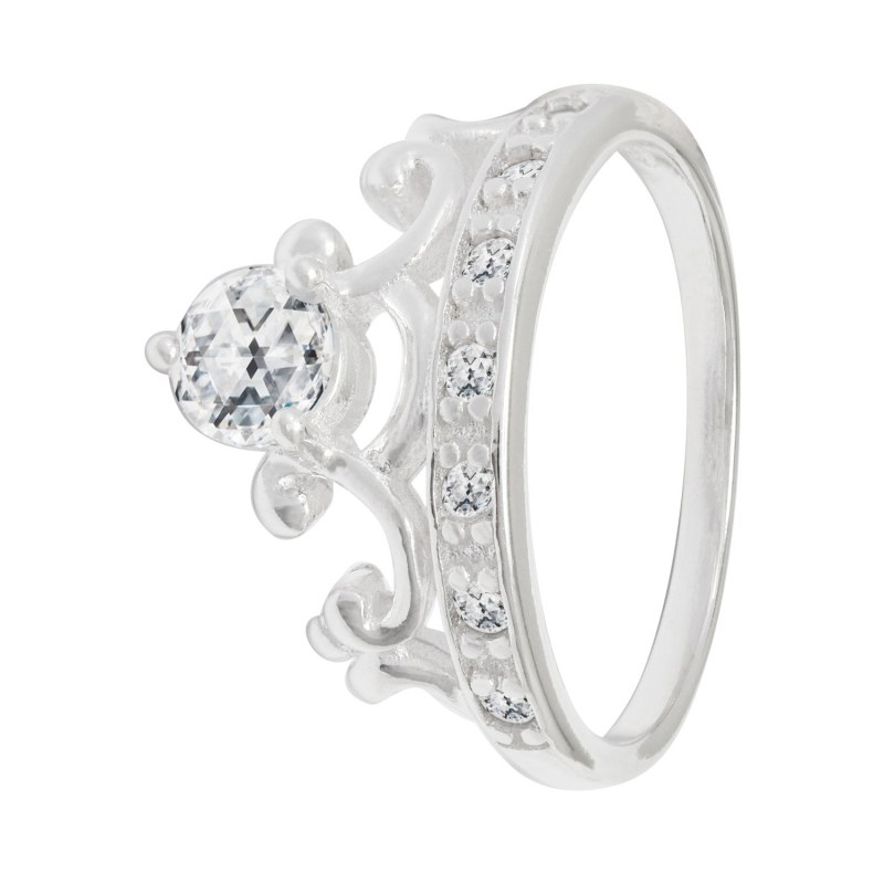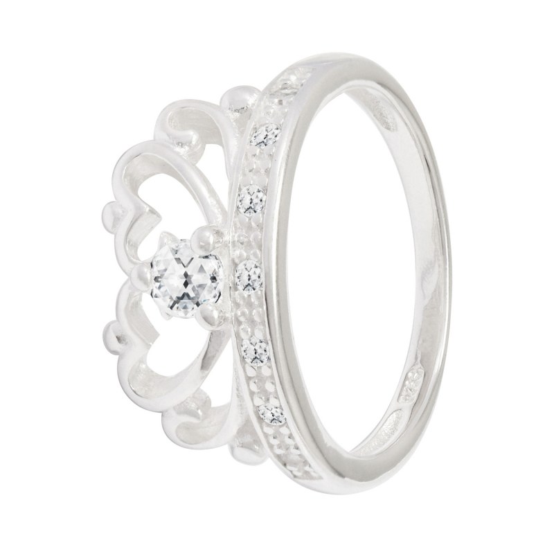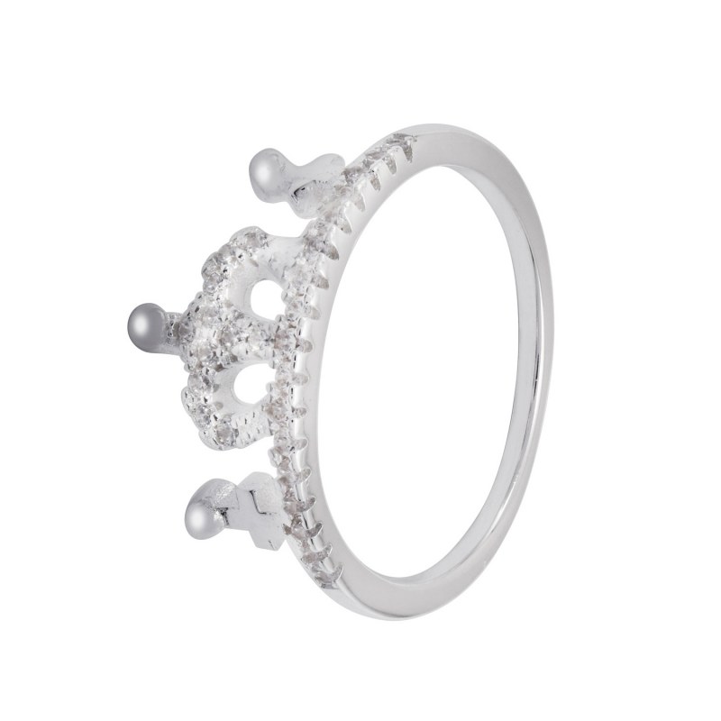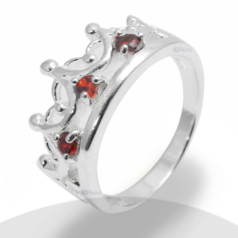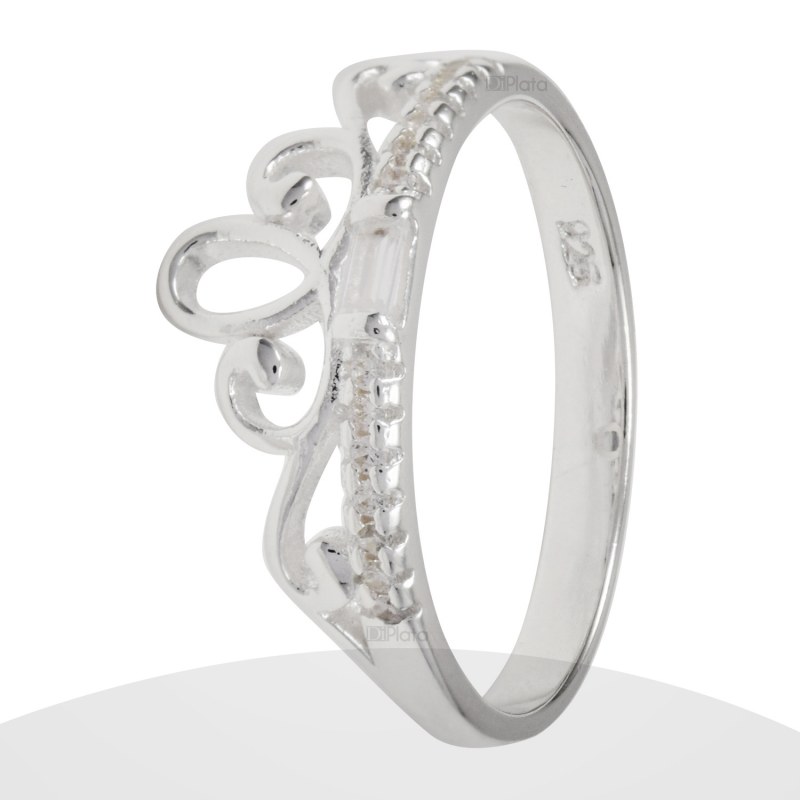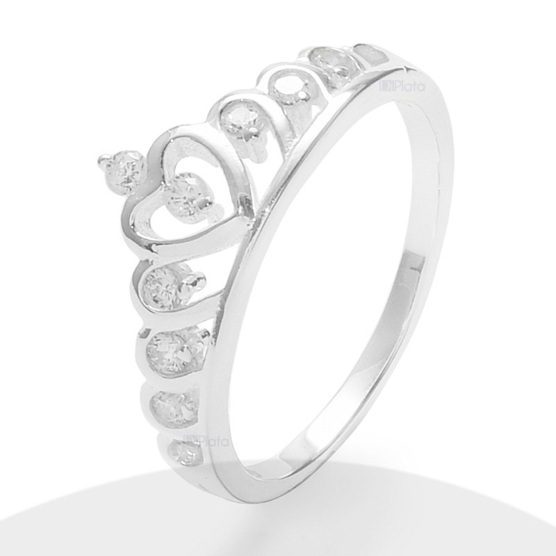 Anillo corona centro corazón color cristal y negro circones plata 925