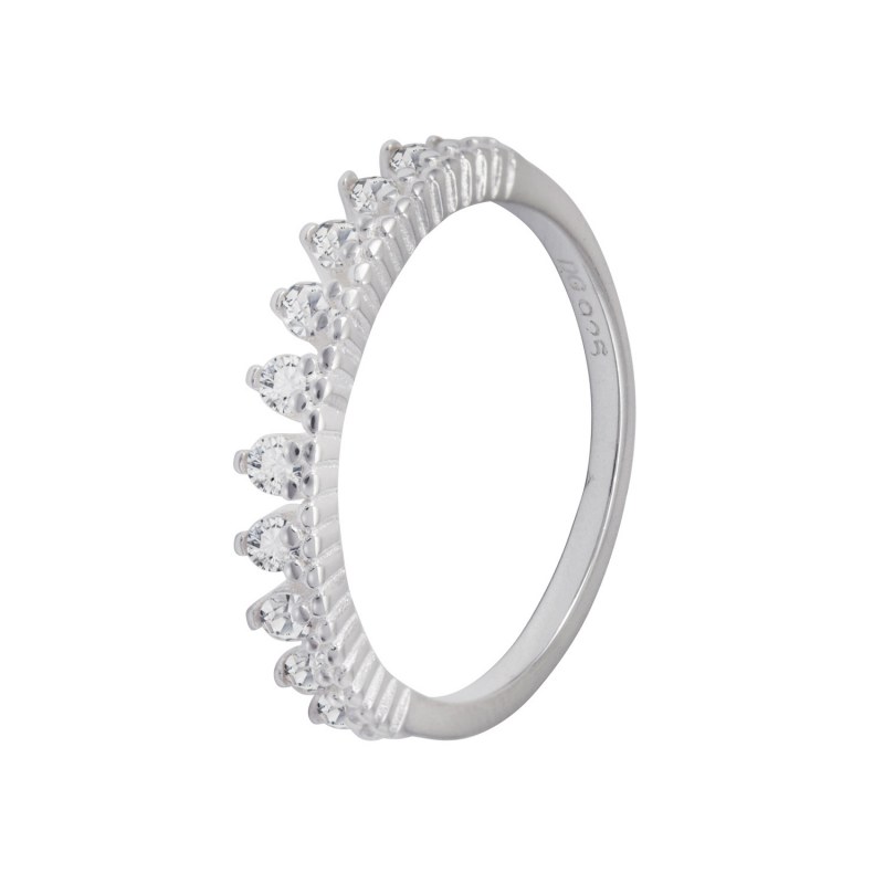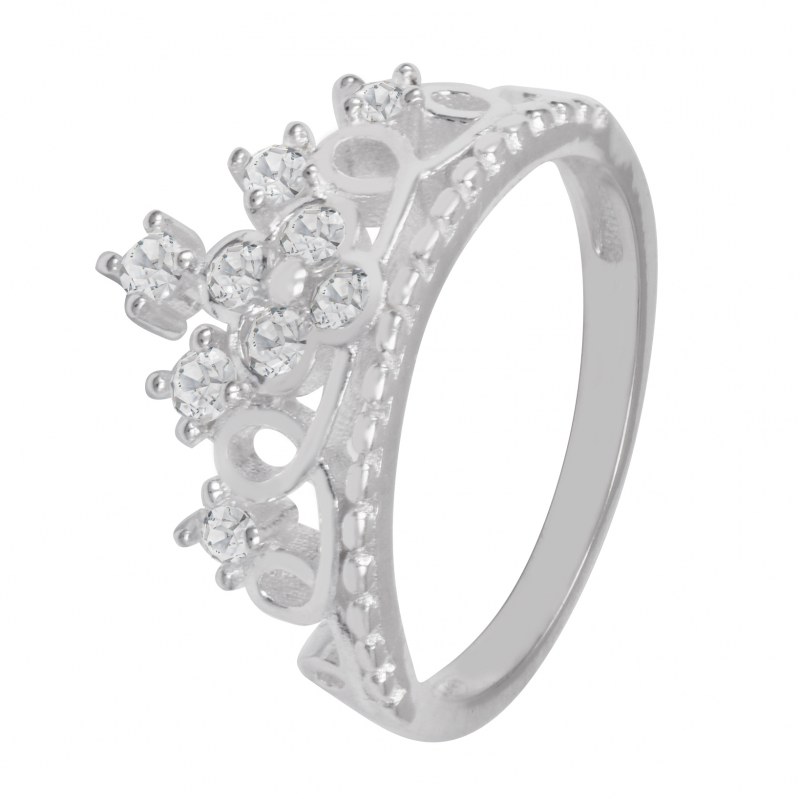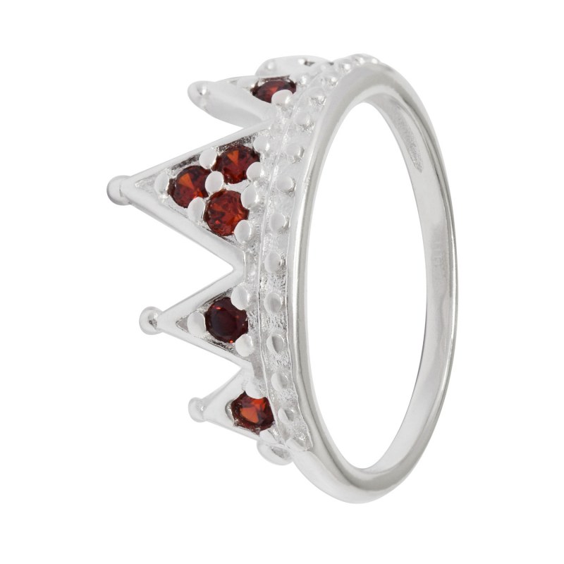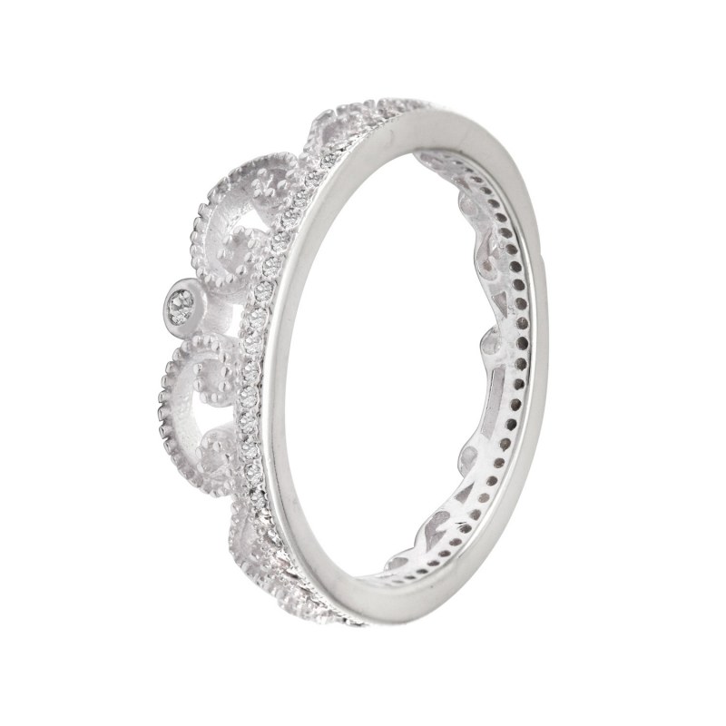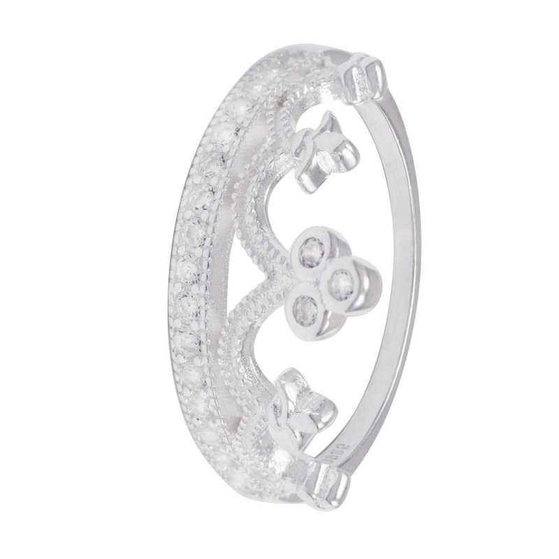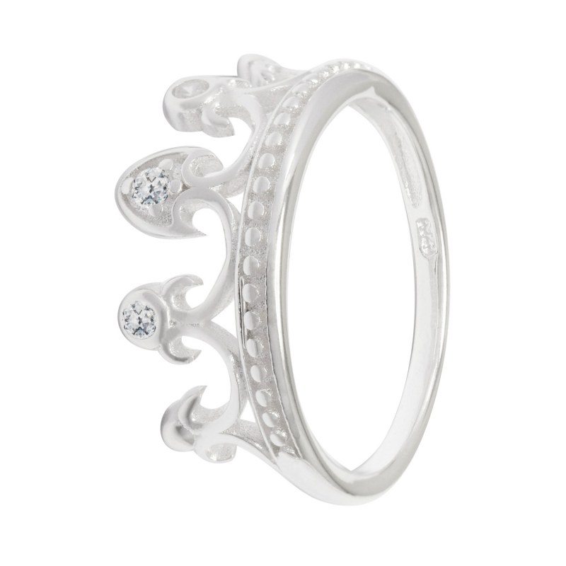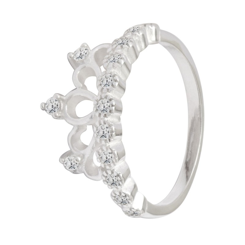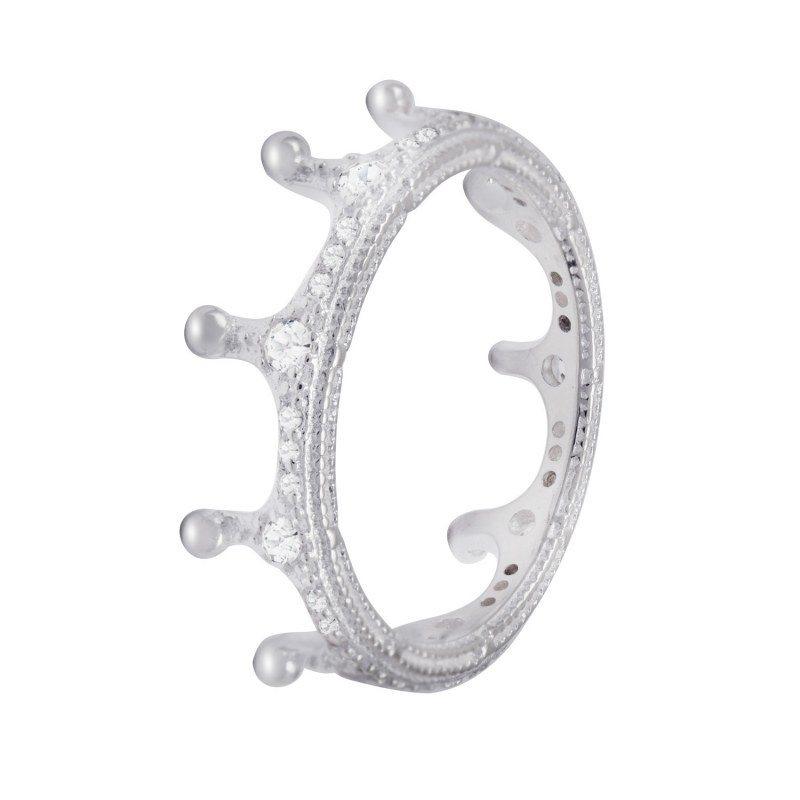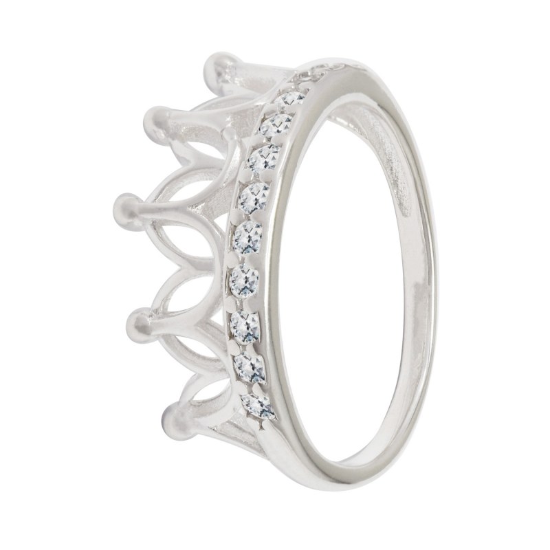Anillo corona centro corazón color cristal y negro circones plata 925