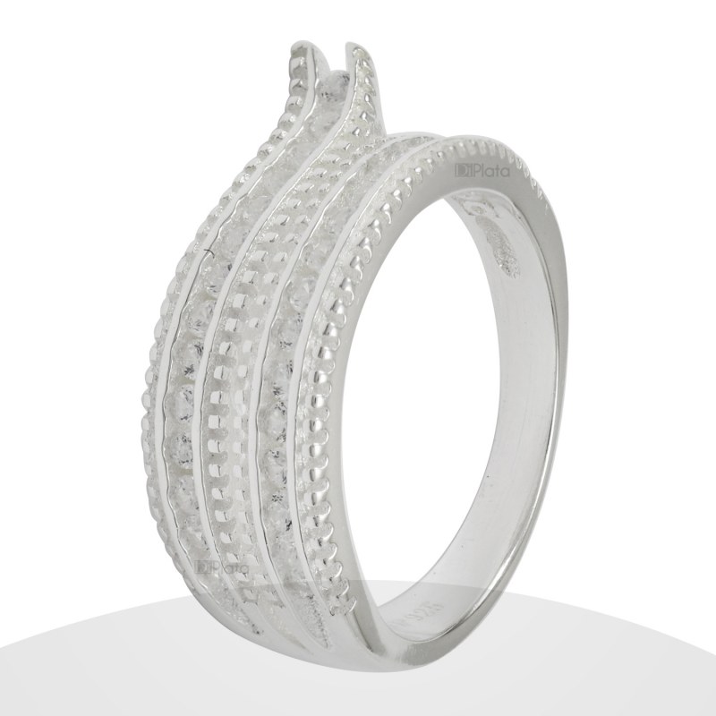Anillo cinco puentes cruzados centro con micro circones plata 925