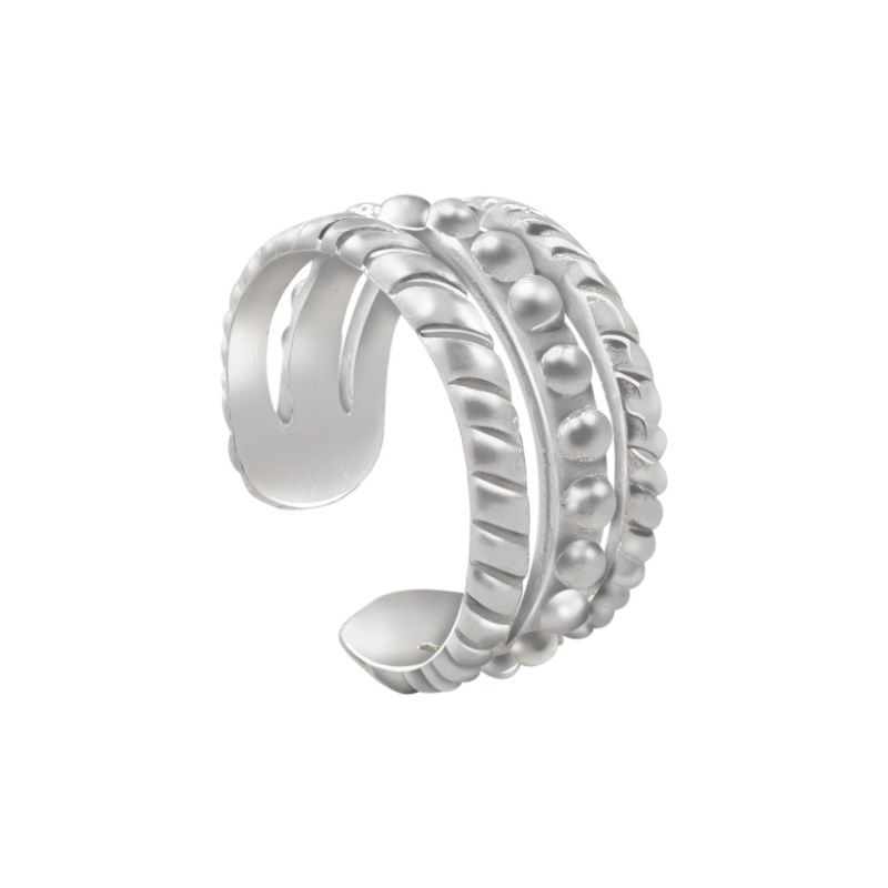 Anillo midi ring tres barras con ranuras y puntitos Plata 925