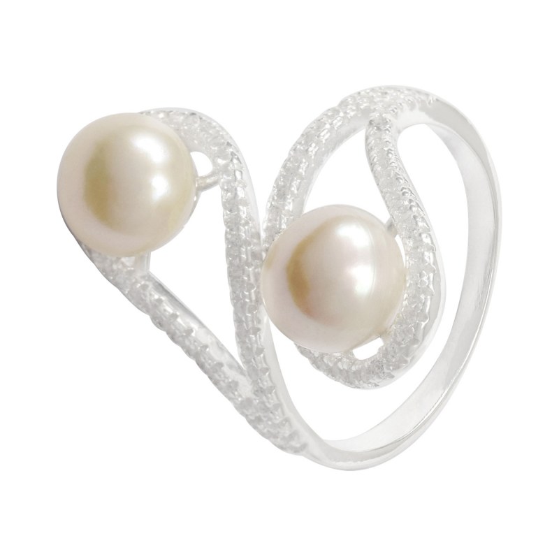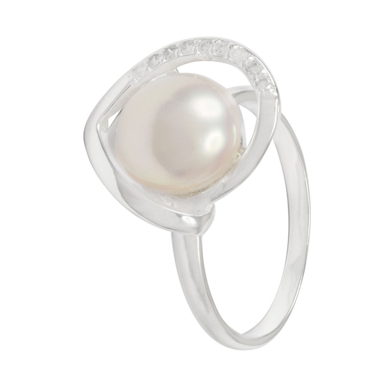 Anillo perla y micro circones forma de pera cruzadas plata 925