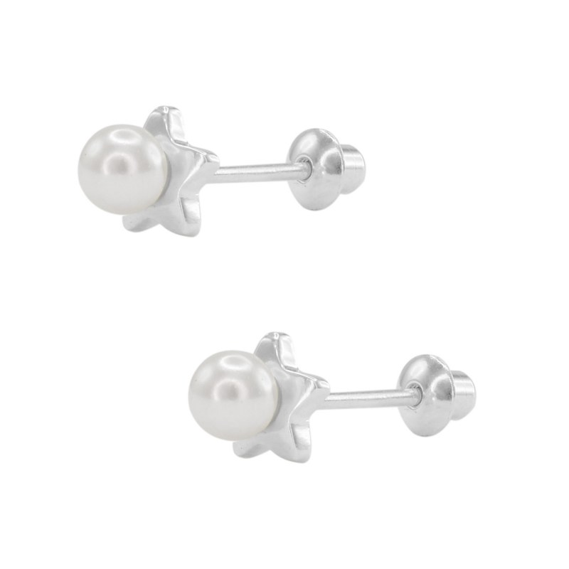 Aros Abridores Estrellita con Perla diam: 6 mm Plata 925