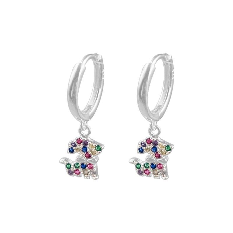 Aro argolla diámetro: 12mm con perrito colgante multicolor Plata 925
