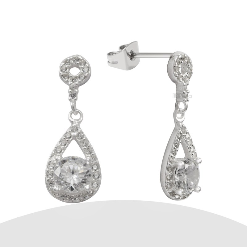 Aro colgante diseño gota micro circón color cristal Plata 925