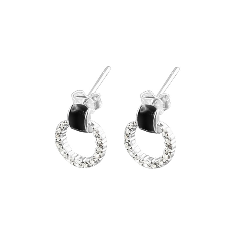 Aro circulo con micro circones color cristal y barra negra Plata 925