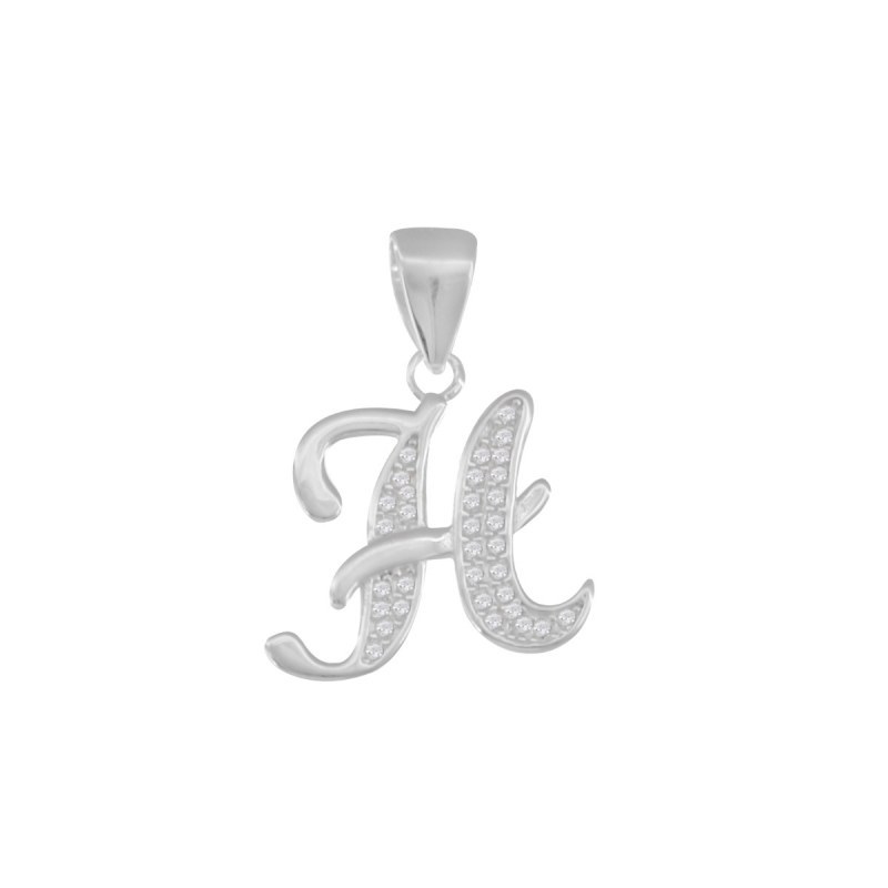 Colgante letra H con micro circones color cristal diámetro: 15 mm Plata 925