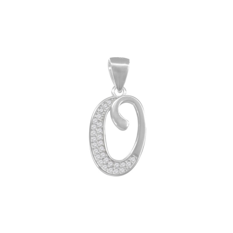 Colgante letra O con micro circones color cristal diámetro: 15 mm Plata 925