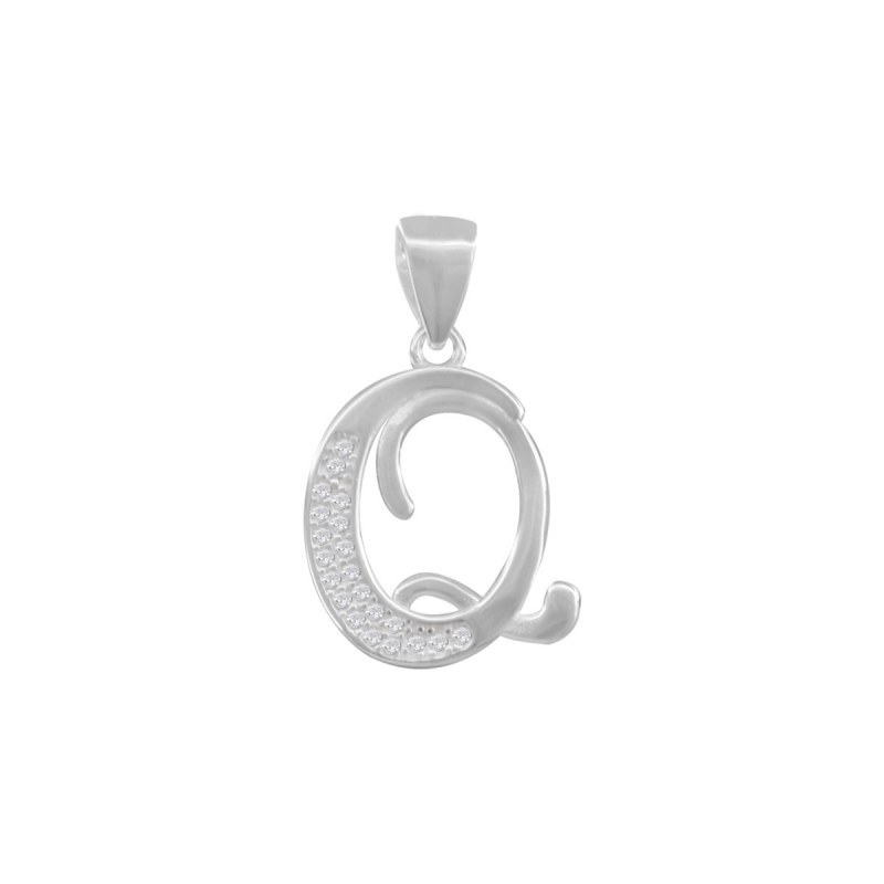 Colgante letra Q con micro circones color cristal diámetro: 15 mm Plata 925