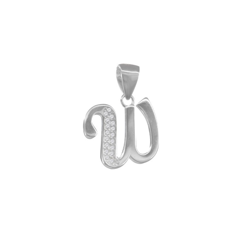 Colgante letra W con micro circones color cristal diámetro: 15 mm Plata 925