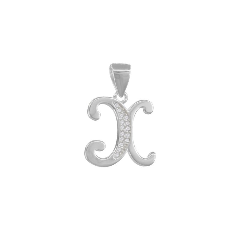 Colgante letra X con micro circones color cristal diámetro: 15 mm Plata 925