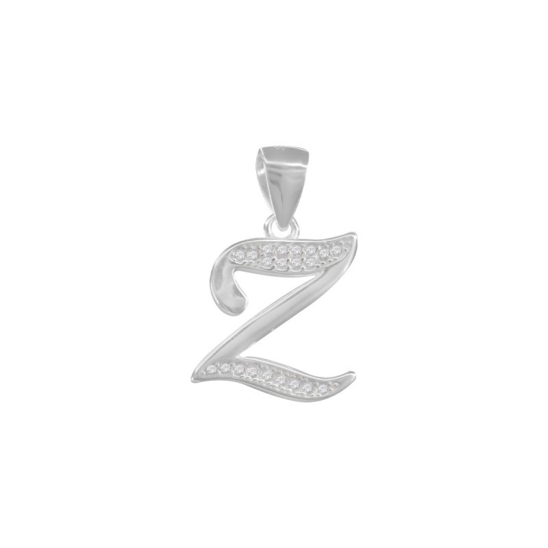 Colgante letra Z con micro circones color cristal diámetro: 15 mm Plata 925