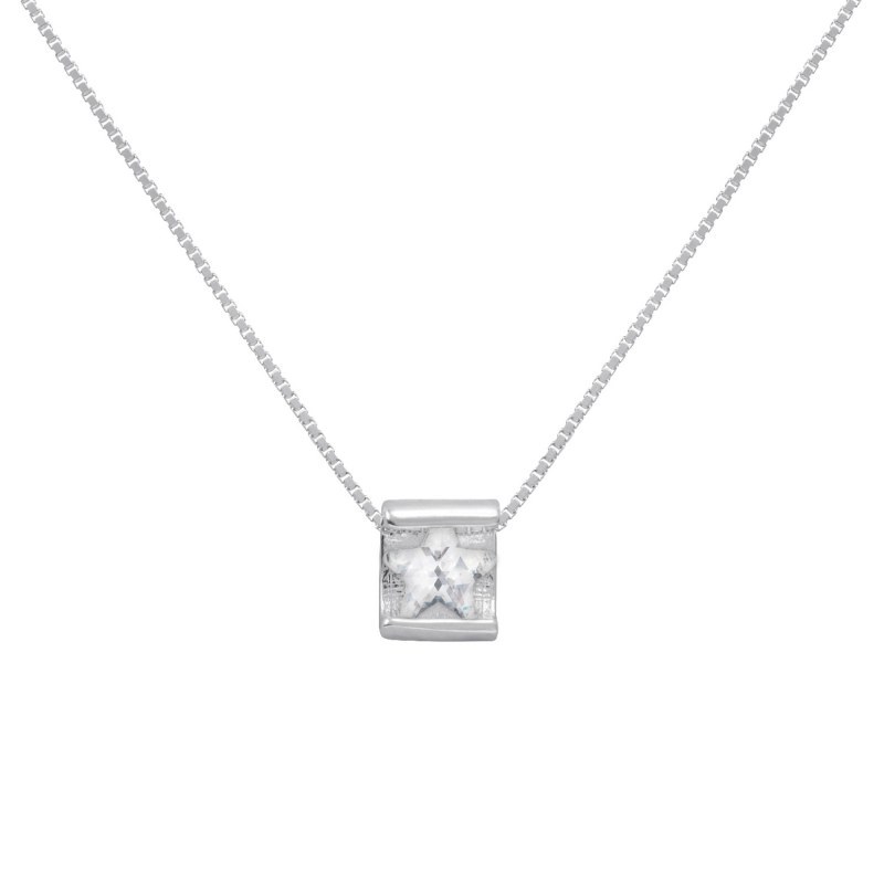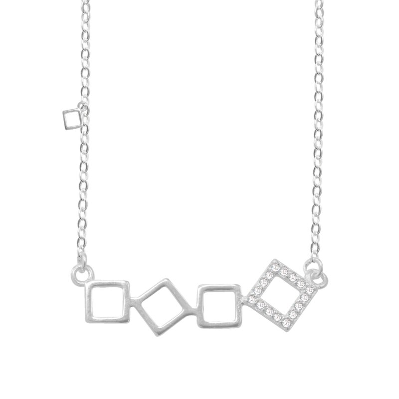 Collar cinco cuadrados uno con micro circones 40cms mas extensión plata 925