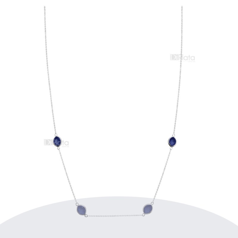 Collares colgantes cuatro cristales azul 70 cms mas extensión plata 925