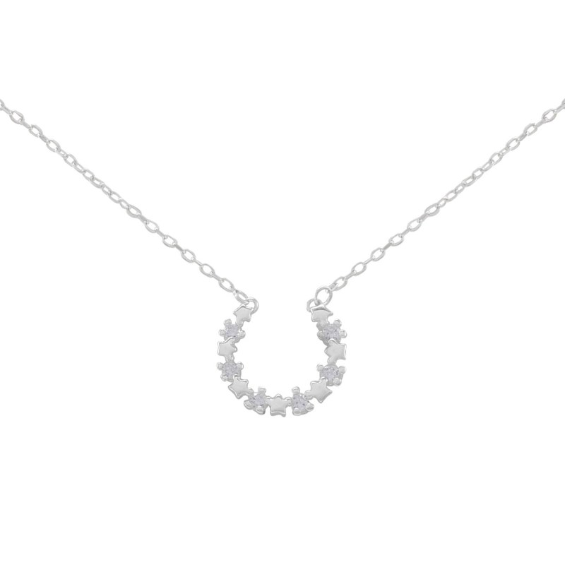 Collar medio circulo de estrellas con circónes 45 cms mas extensión plata 925
