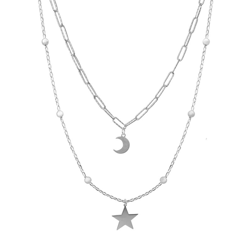 Collar doble cadena luna y estrella Plata 925