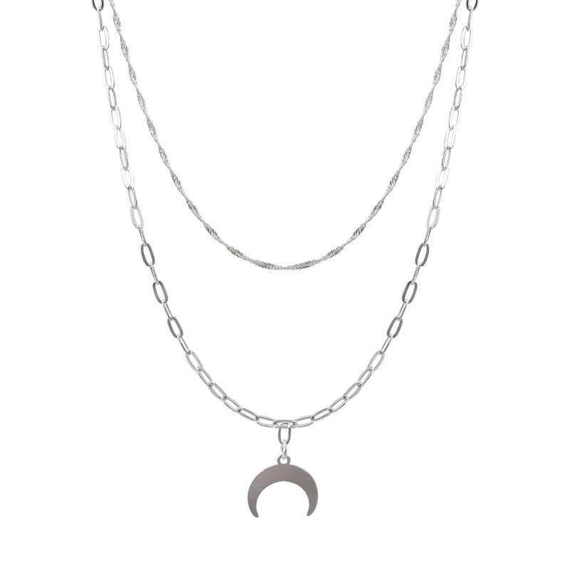 Collar doble cadena con luna cadenas de 45 y 55cms Plata 925