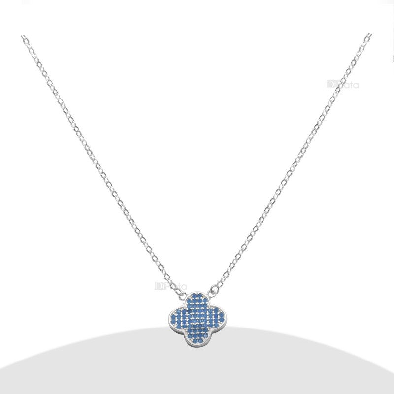 Collar trébol rodeado puntitos largo: 45cms mas 3cms extensión Plata 925