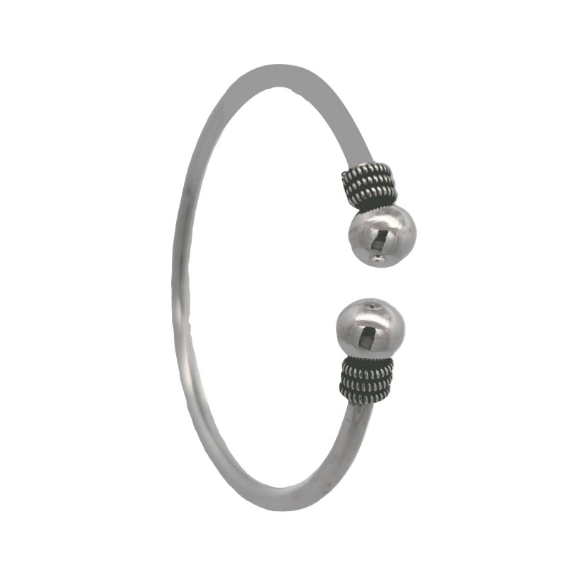 Pulsera esclava ajustable envejecida dos bolitas plata 925