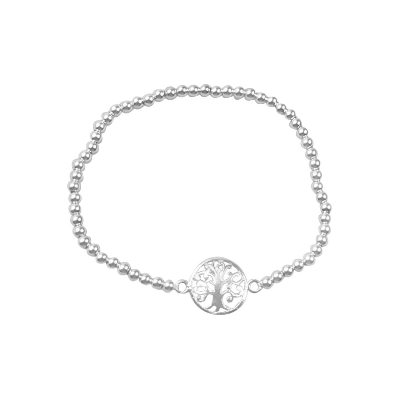Pulsera elástica bolitas con árbol de la vida Plata 925