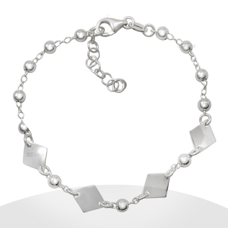 Pulsera cuatro rombos nueve bolitas 19 cm plata 925