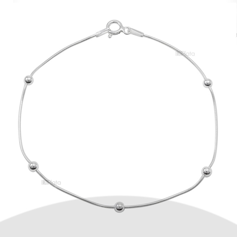 Pulsera cola topo con bolitas largo: 19cms Plata 925