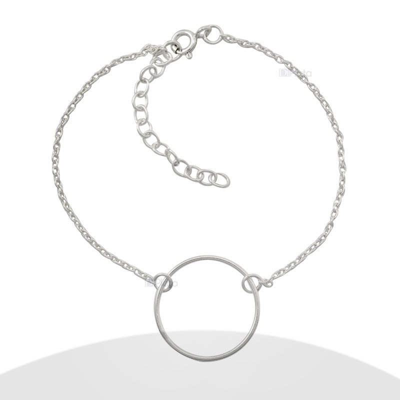 Pulsera cadena círculo liso en centro 16 cms mas extensión Plata 925