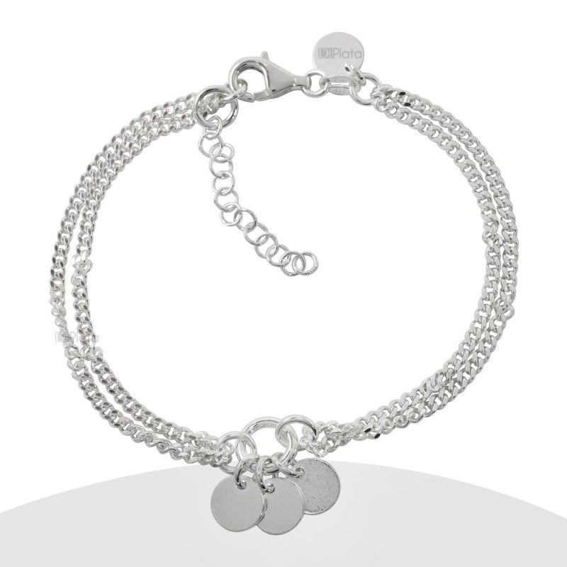 Pulsera cadena con círculos 18cms mas 3cms de extensión Plata 925