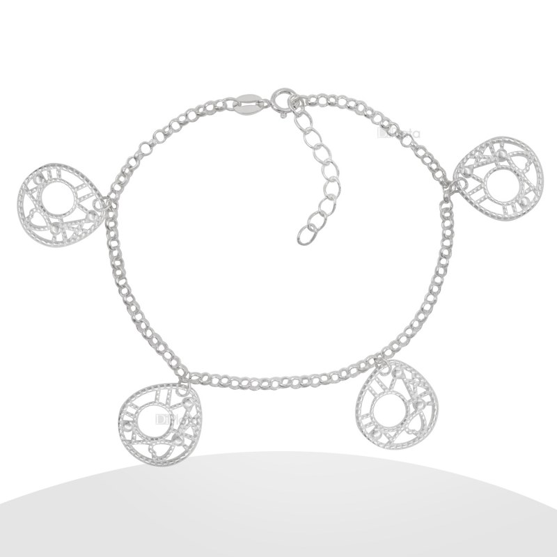 Pulsera circulos bolitas colgantes y cascabel 20cms Plata 925