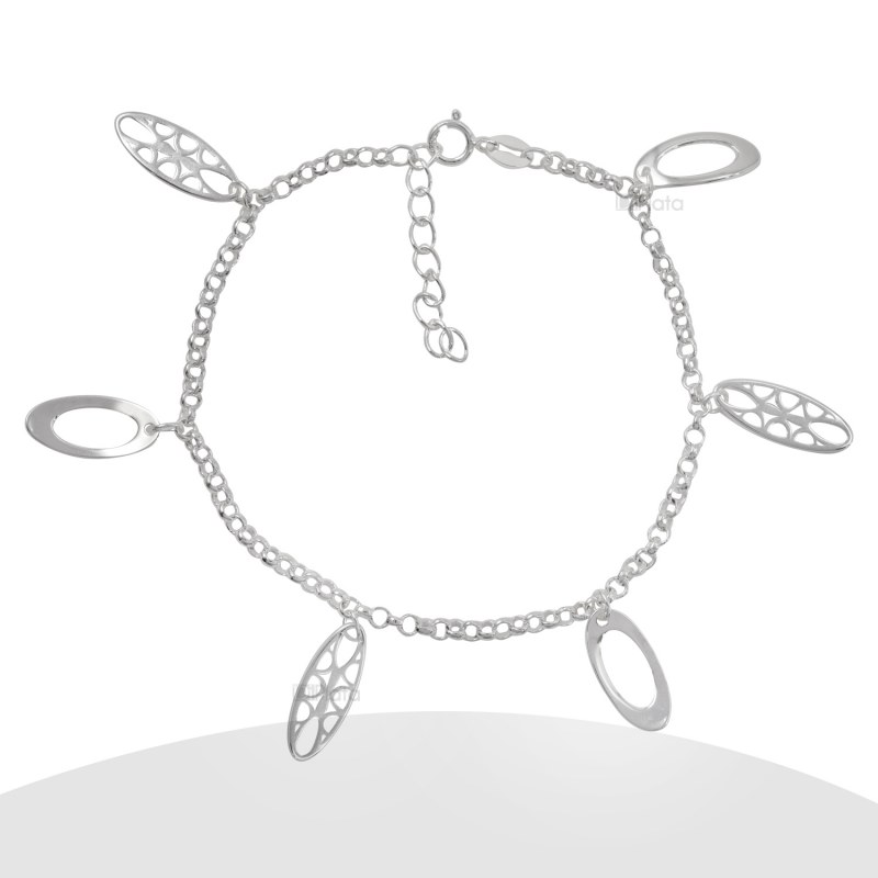 Pulsera cadena bolitas y ovaladas largo: 19cms Plata 925