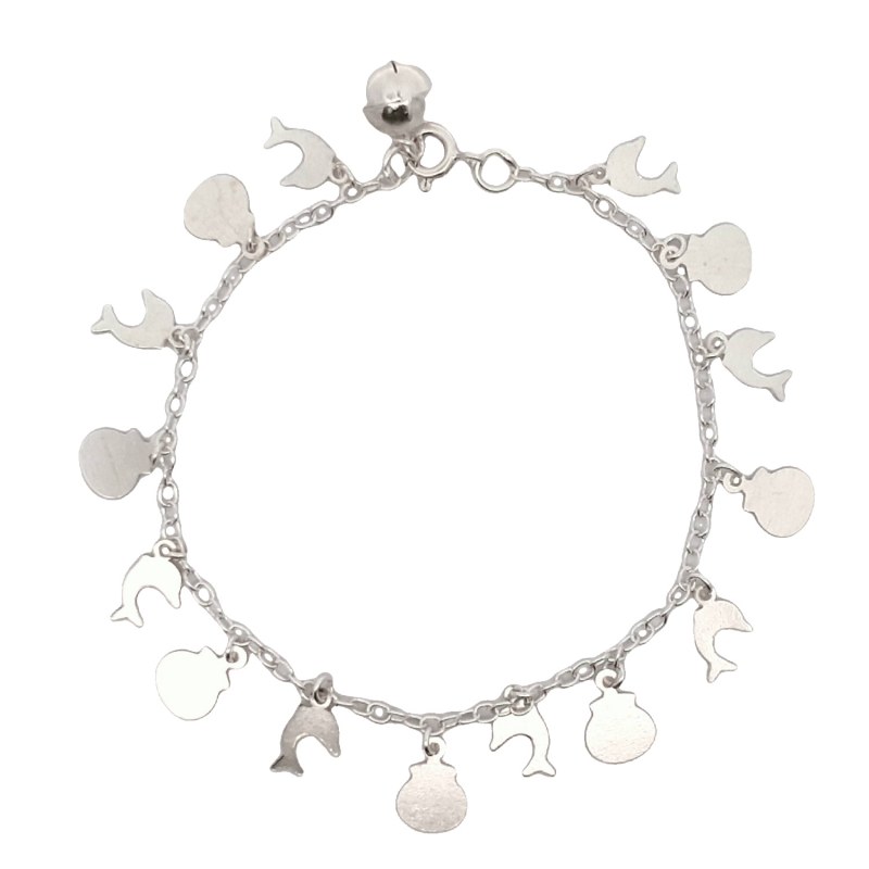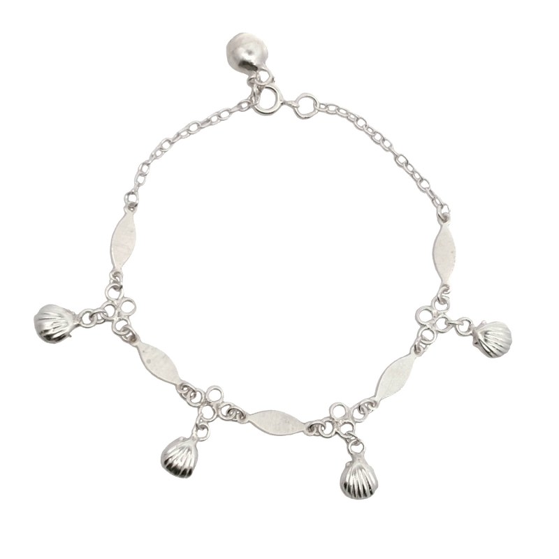 Pulsera conchitas colgantes y cascabel 19cms plata 925