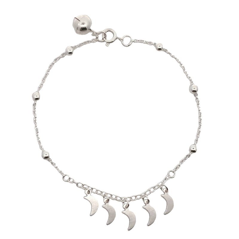Pulsera bolitas lunas colgantes y cascabel 20cms Plata 925