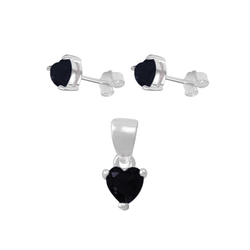 Set circón corazón diámetro: 6mm cinco colores diferentes Plata 925