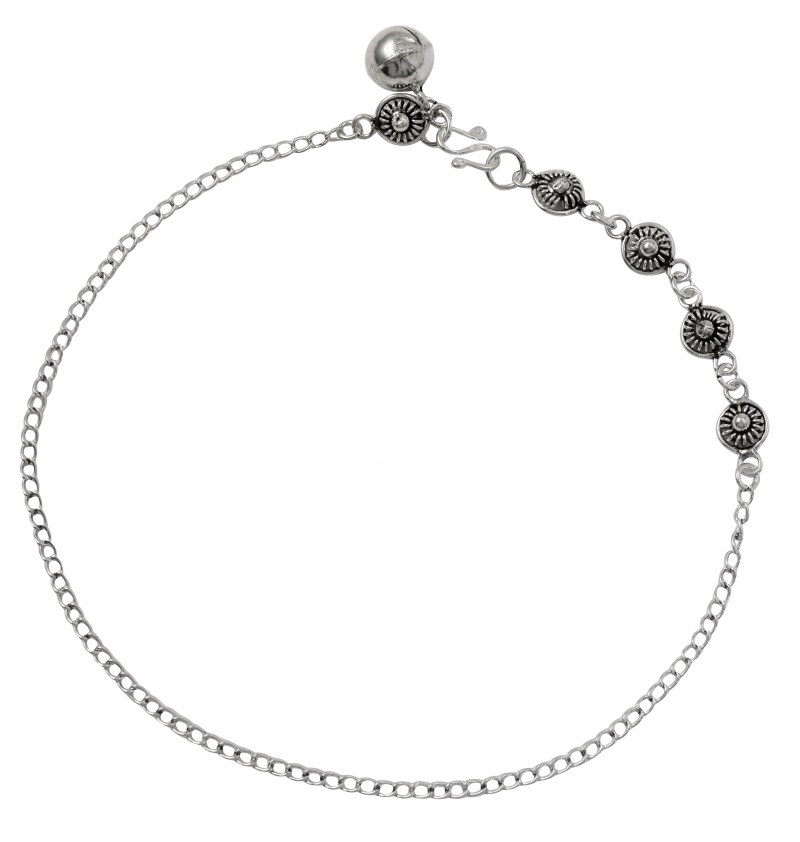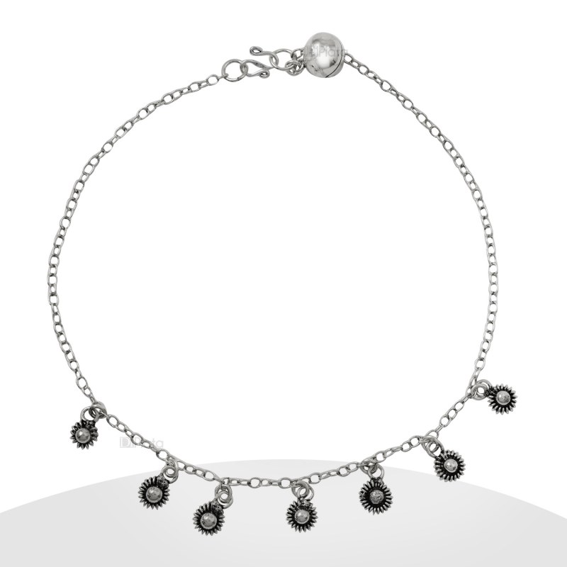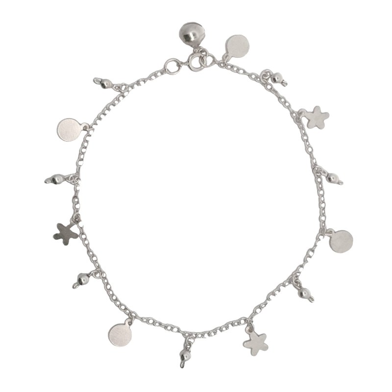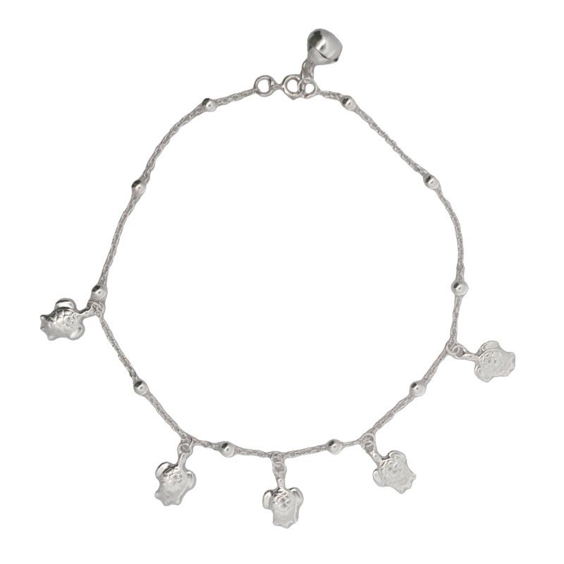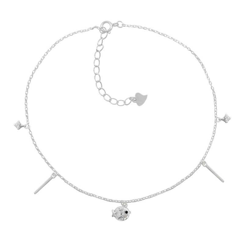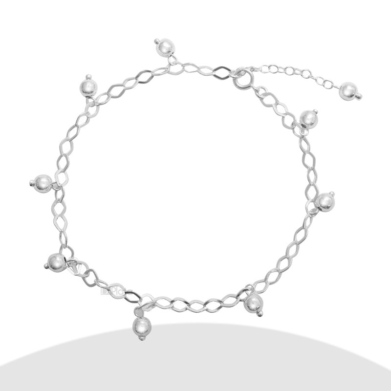 Tobillera bolitas y cuatro circones 25cms plata 925