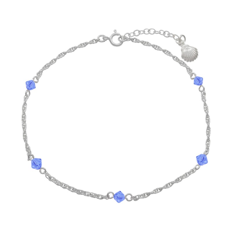 Tobillera cadena cordón cristal diferentes colores Plata 925