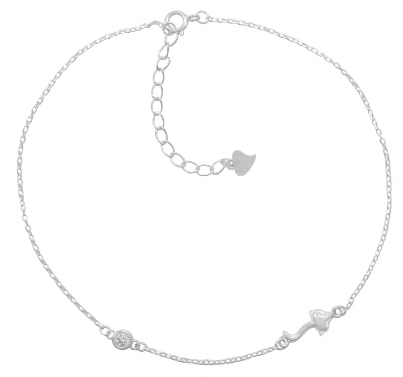 Tobillera cadena cola topo con bolitas y circones Plata 925