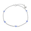 Tobillera cadena cordón con cinco cristales de diferentes colores Plata 925