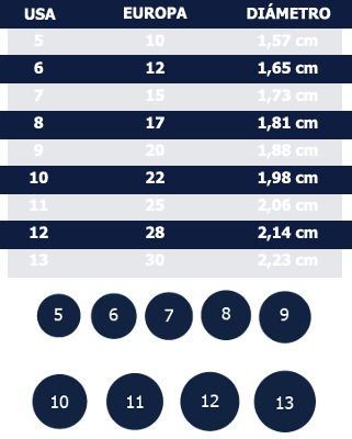 En DiPlata utilizamos la escala de medida de anillos de USA, contamos con medidores de anillos, para facilitar la elección de estos.